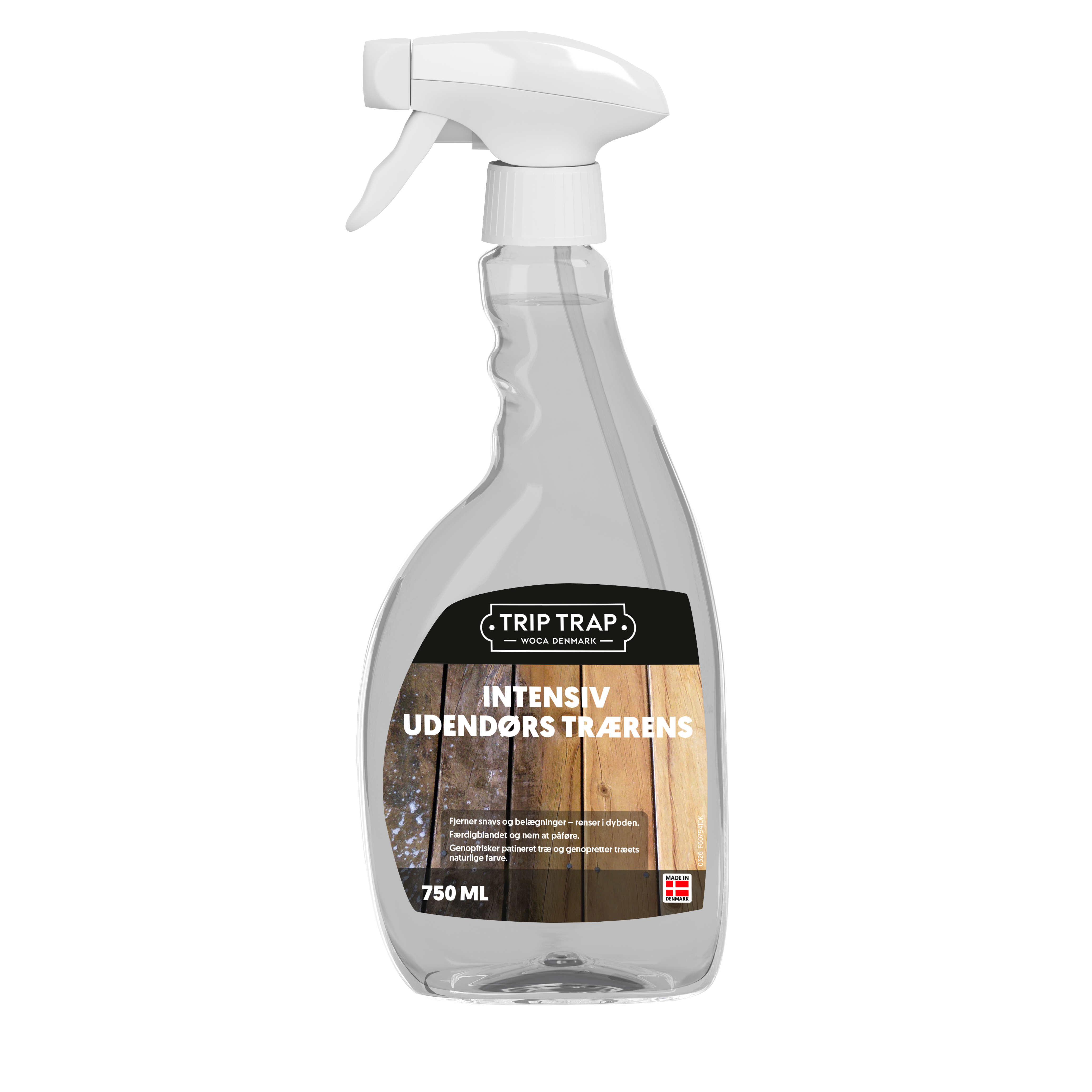 Intensiv Udendørs Trærens er en intensiv rens som genopfrisker patineret udendørstræ. Det er et færdigopblandet tyktflydende produkt, som er nem at påføre selv på vertikale overflader. Intensiv Udendørs Trærens trænger dybt ind i træet og fjerner snavs og grå patina. Efter behandling bør træet behandles med Trip Trap Træolie eller Terrasseolie Eksklusiv for at give træet den optimale beskyttelse.