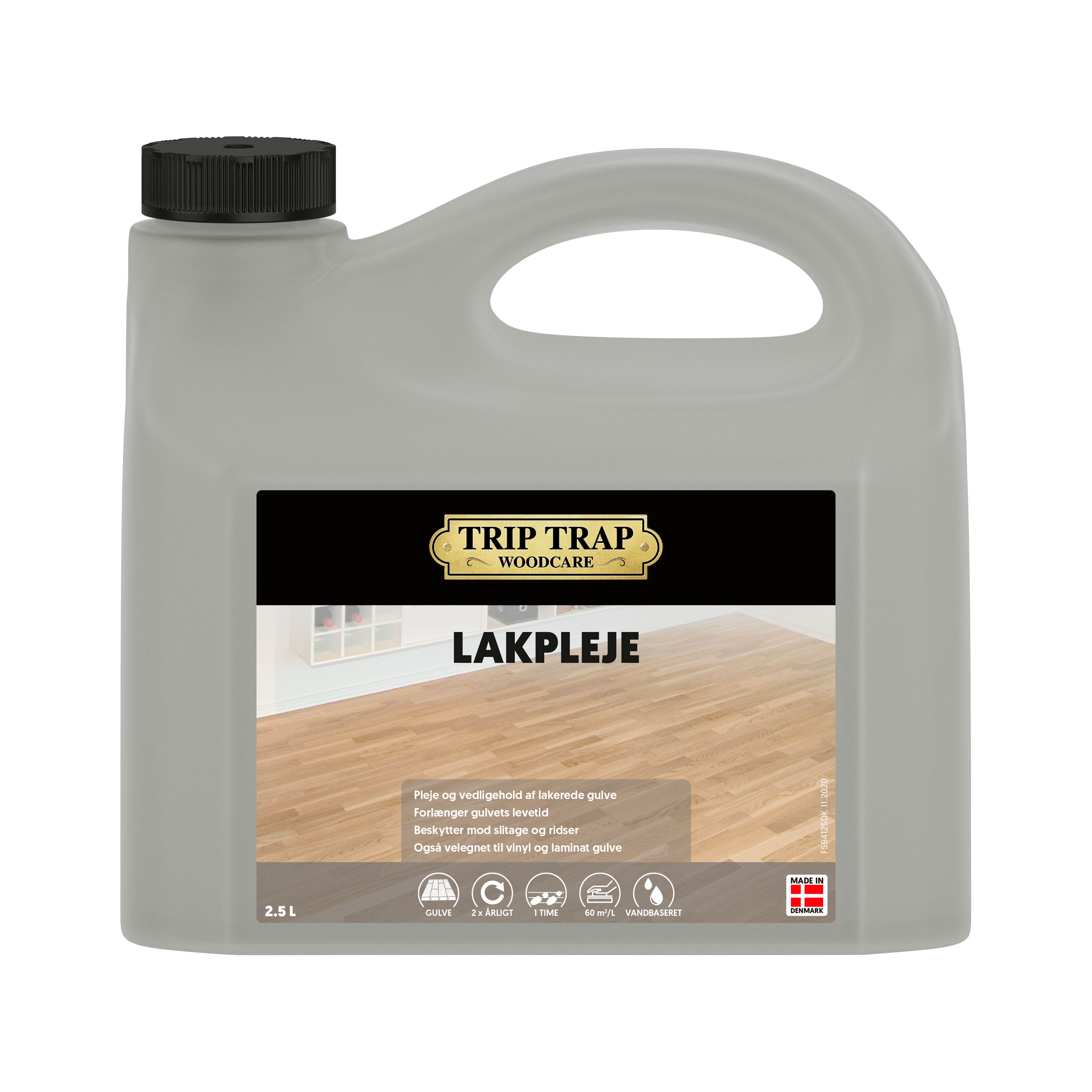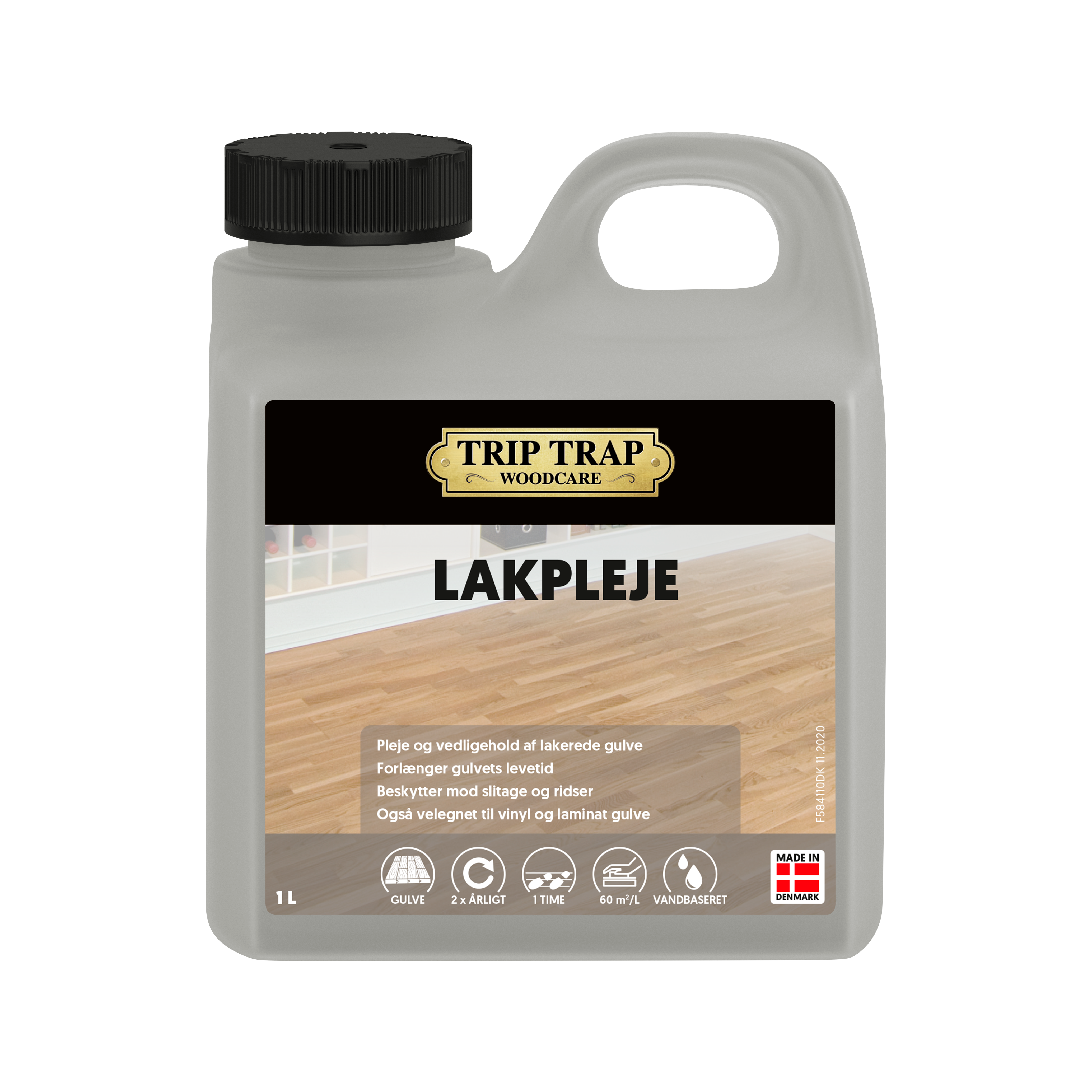 Giv dit lakeret trægulv en plejende behandling med Trip Trap Lakpleje. Plejemidlet udjævner små ridser, styrker overfladens resistens og beskytter effektivt mod slitage. Derved forlænges overfladens – gulvets – levetid. Lakpleje anvendes efter behov 1-2 gange årligt. Kan også anvendes til vinyl- og laminatgulve.