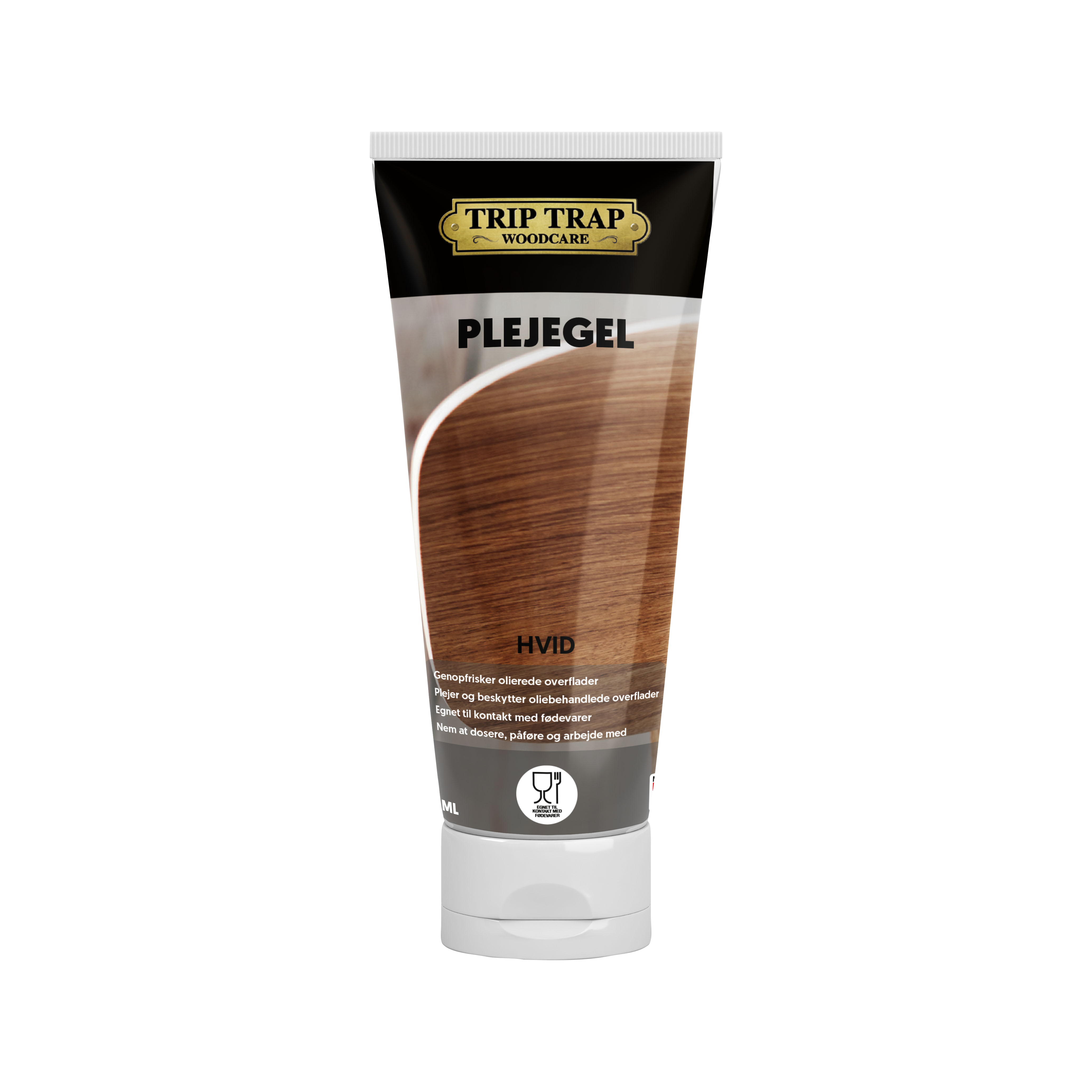 Trip Trap Plejegel anvendes til pleje og vedligeholdelse af olierede indendørs træoverflader og gulve. Olien tørrer hurtigt og giver en flot vand- og smudsafvisende overflade.Plejegel er velegnet til møbler, køkkenborde, gulve samt andre indendørs træoverflader. Den kan med fordel også anvendes til fabriksolierede/UV-olierede overflader.