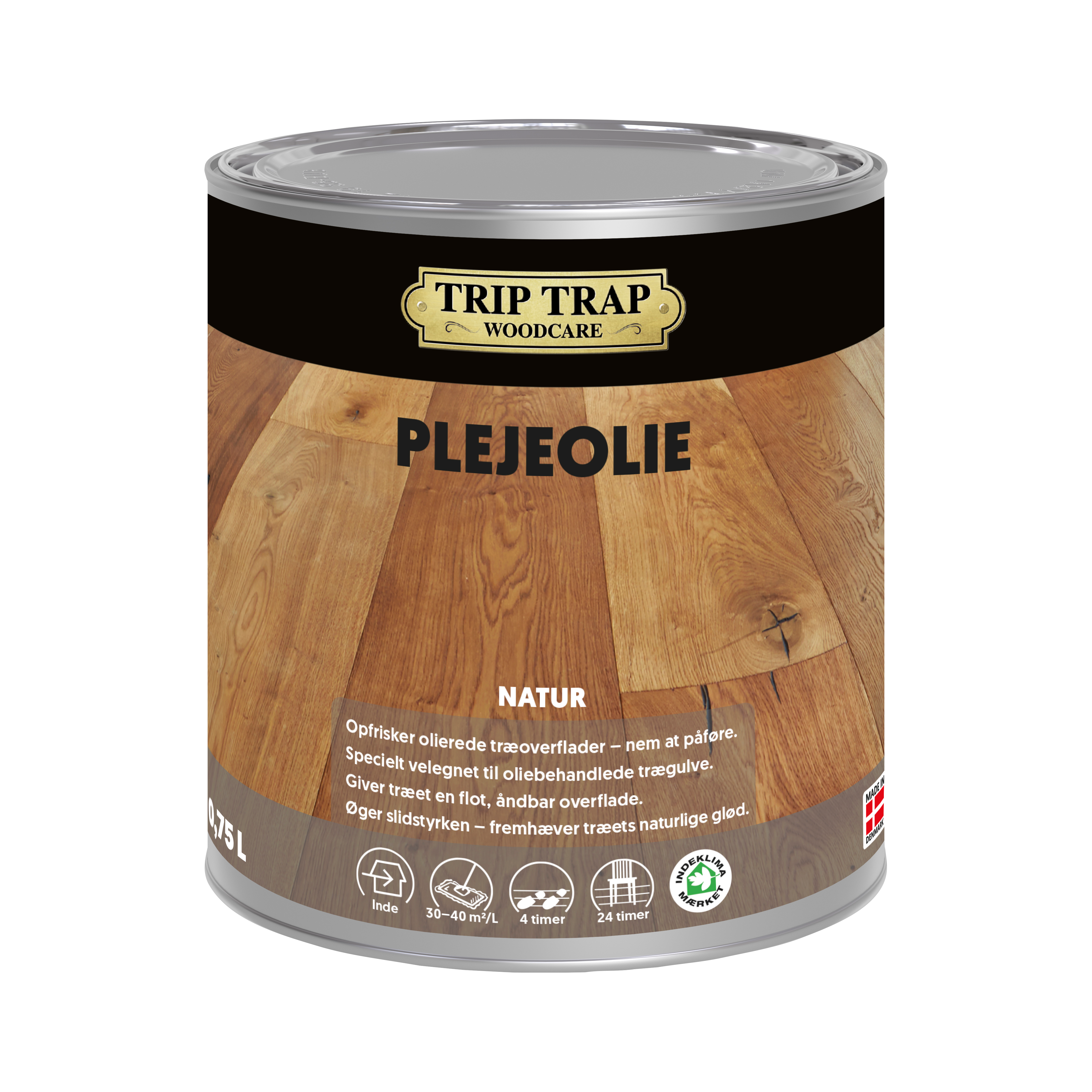 Plejeolien anvendes til vedligeholdelse og pleje af alle oliebehandlede træoverflader – især olierede trægulve. Den tilfører ny olie, genopfrisker træets naturlige glød og styrker overfladens modstandsdygtighed over for pletter. Produktet kan påføres både manuelt og med maskine